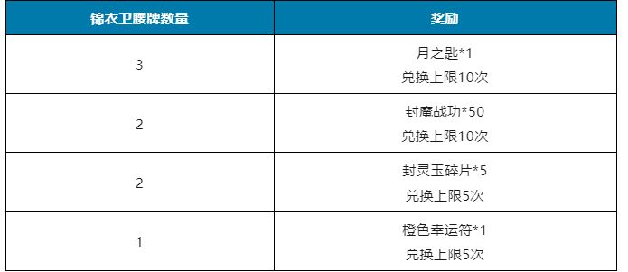 在之前新版本预热活动中,大家获得了大量的「锦衣卫腰牌」,在今日正式开启兑换!
