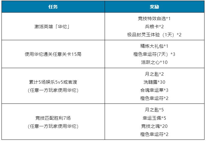 全新英雄华佗上线,完成相关新英雄活动得奖励~
