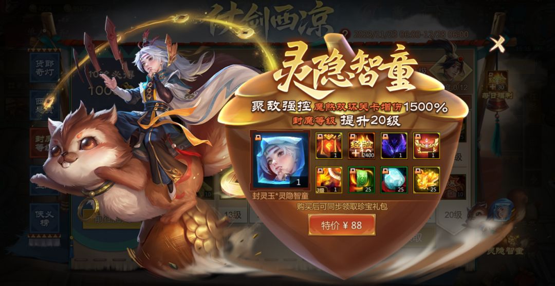 梦梦首先五星推荐灵隐智童礼包,大家可以在仗剑西凉活动中购买获得!