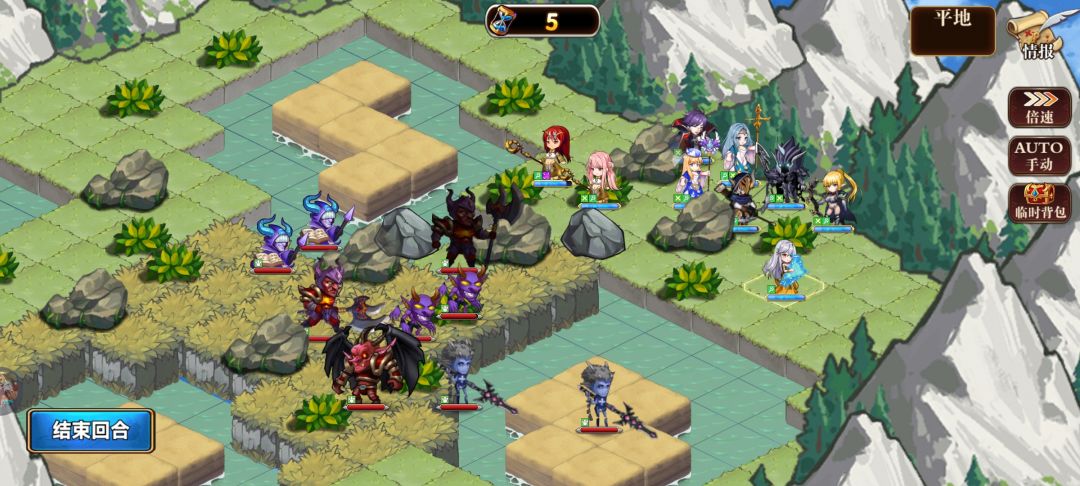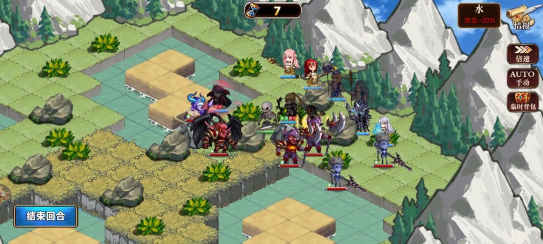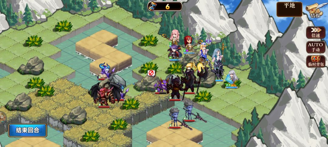 开局站位,铁甲移动后,娜米再动,铁甲到大恶魔前把法师拉出来,这样吸血鬼直接上去放大,力量够直接秒,我因为带了晕刀懒得换,所以没秒掉……