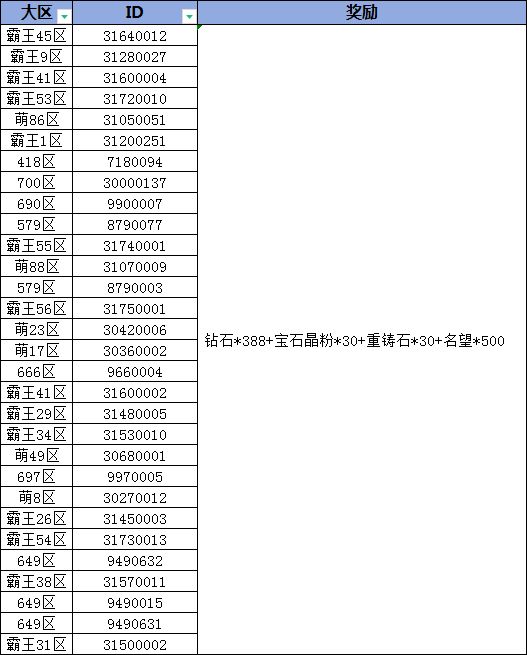 举个栗子:1区-9320222-小萌,D。