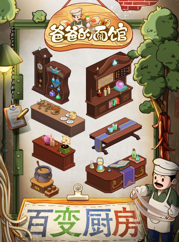 储物柜和备菜台都换成了魔法气息浓厚的复古木艺风格