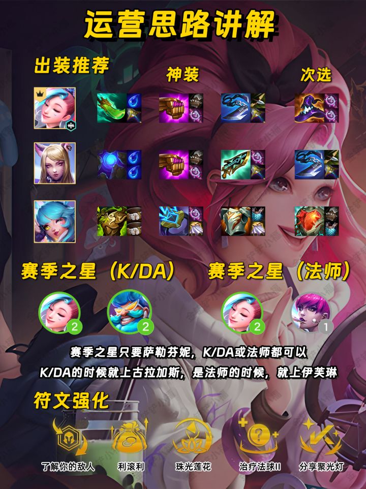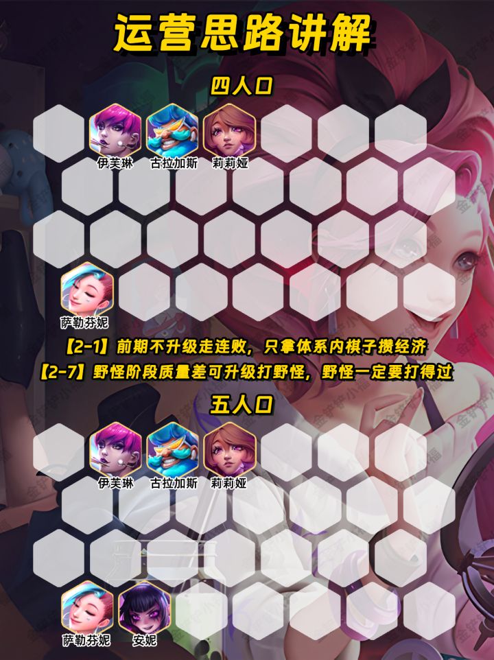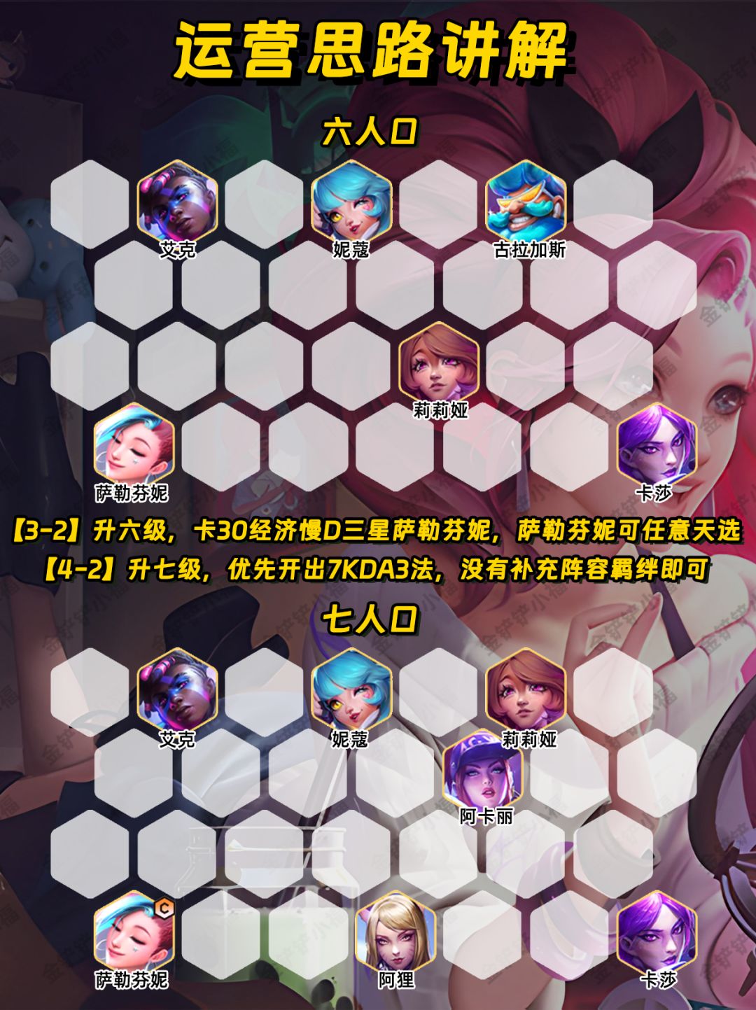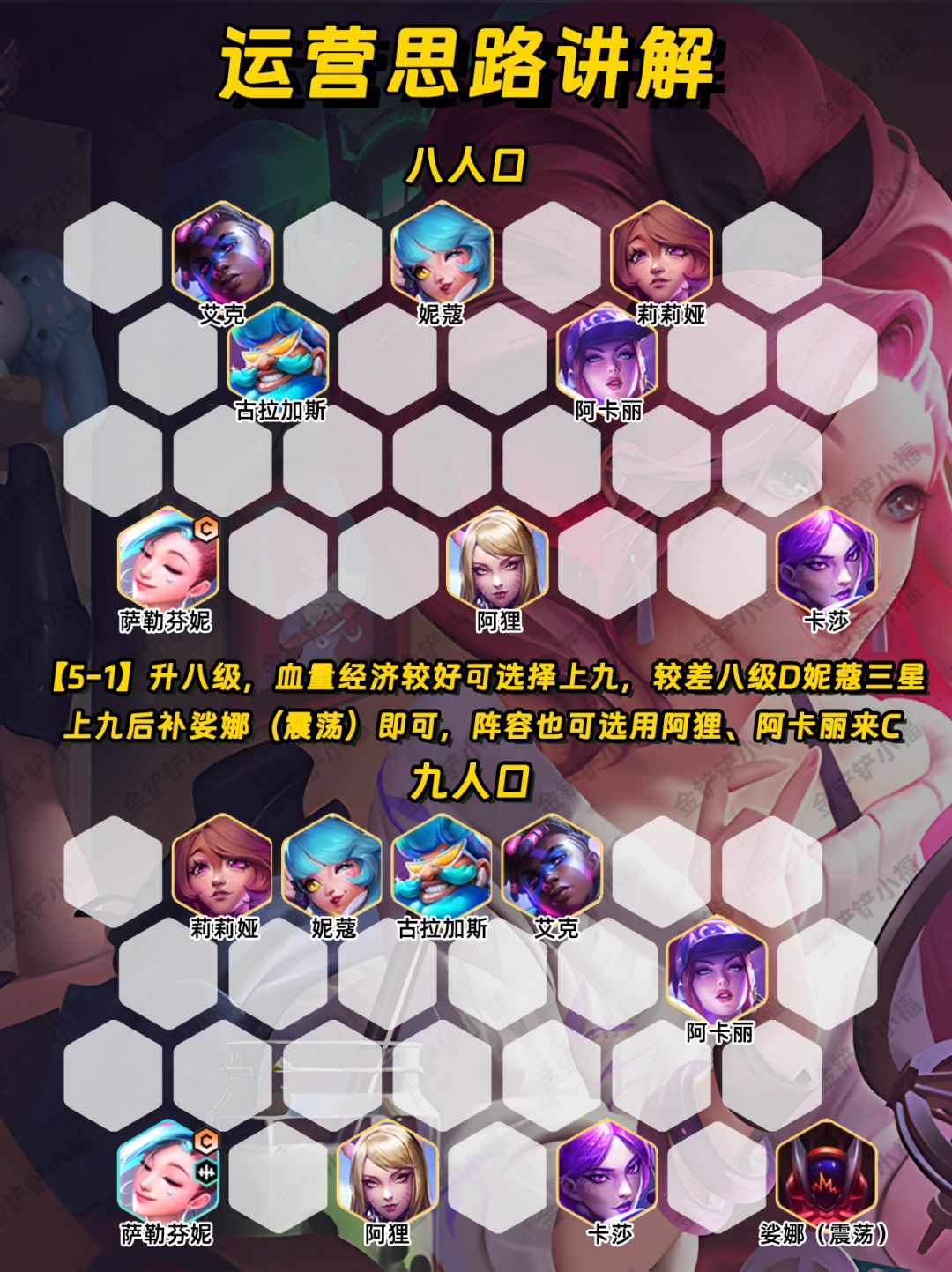 阵容为法系输出,前排妮蔻离子或后排电刀一定要出一个⚡
