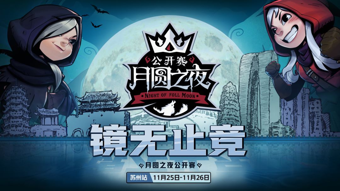 出发,去苏州打月圆!《月圆之夜》镜中对决模式首届公开赛即将于11月25日至26日在苏州太湖国际电竞馆正式打响,感受线下比赛的热烈氛围,赢取奖金与特别奖励,或在线上观看比赛收获“童趣废土旅人”随从皮肤,一起加入苏州站公开赛的欢乐之旅吧!