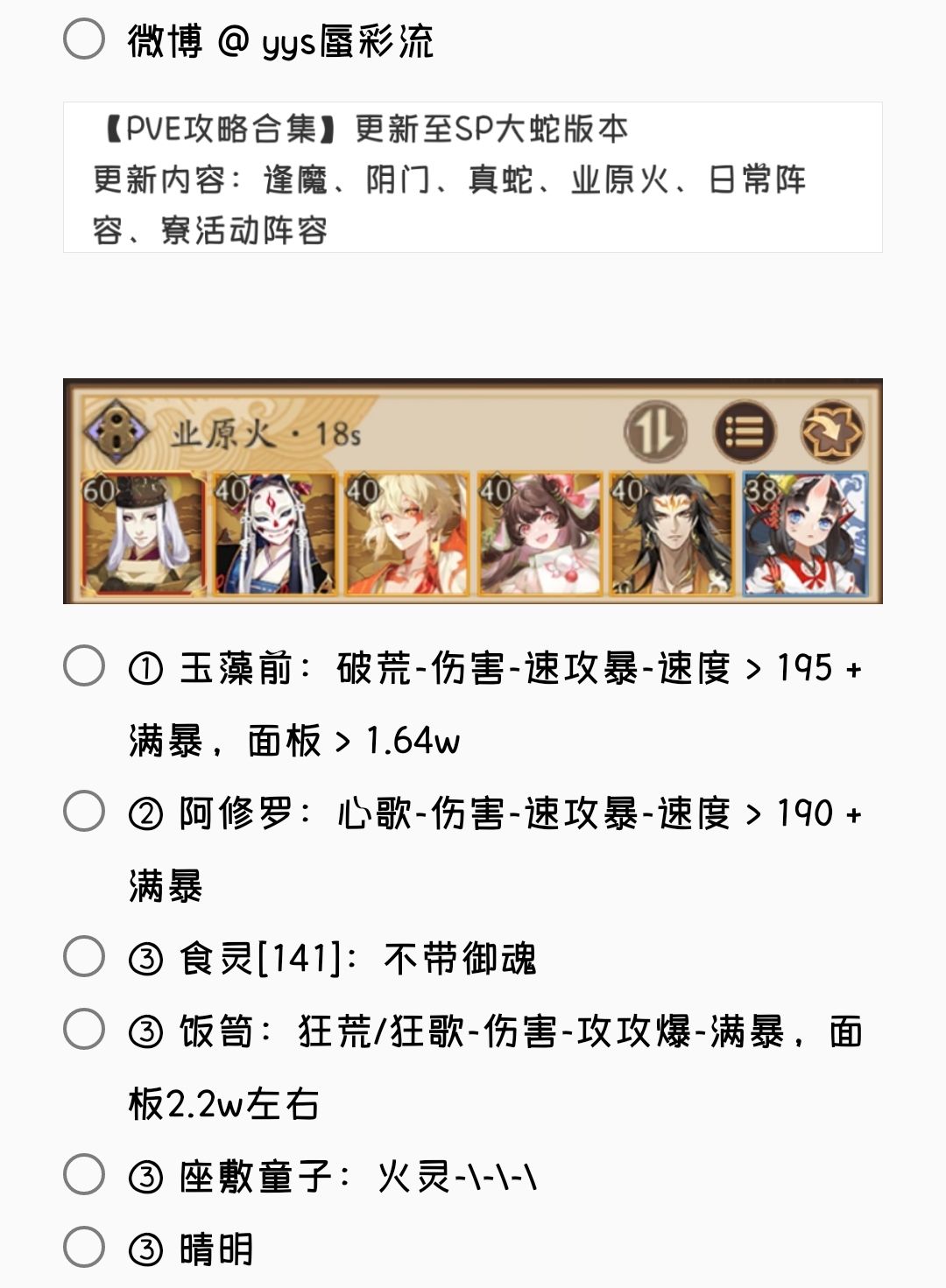 2. 若无特殊文字说明,阵容式神均需六星 + 满技能[151→至少满二技能,以此类推]