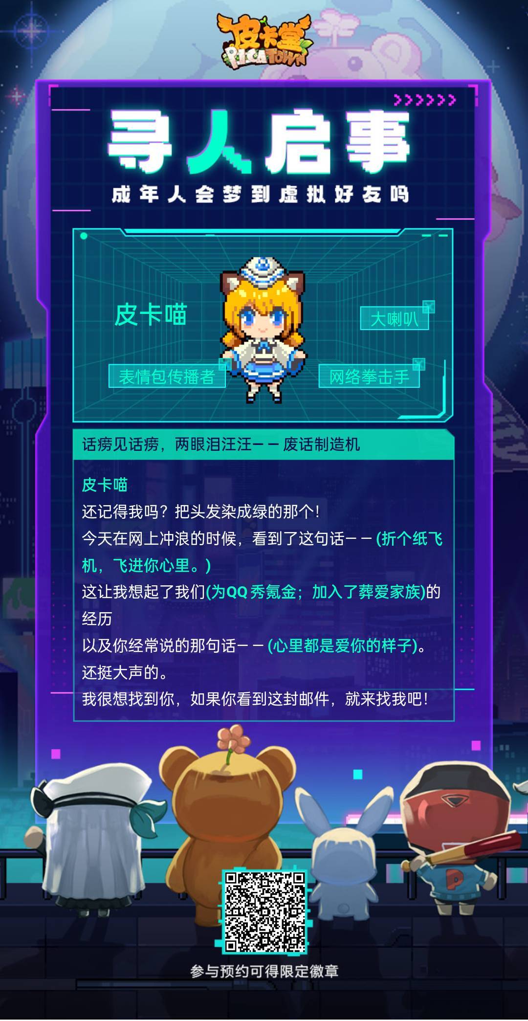 ⭐参与活动可获得“网络一线牵”徽章,评论分享你的【寻人海报】,我们将随机抽取2位皮卡亲获得皮卡堂周边大礼包*1(皮卡堂抱枕、鼠标垫、贴纸福袋各一个)