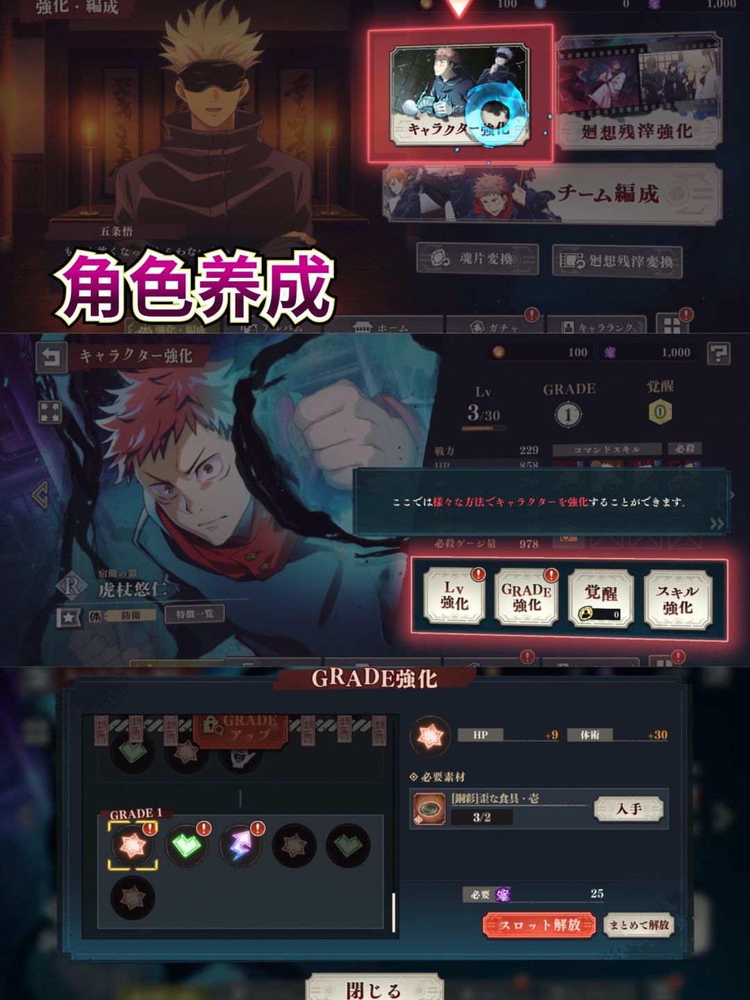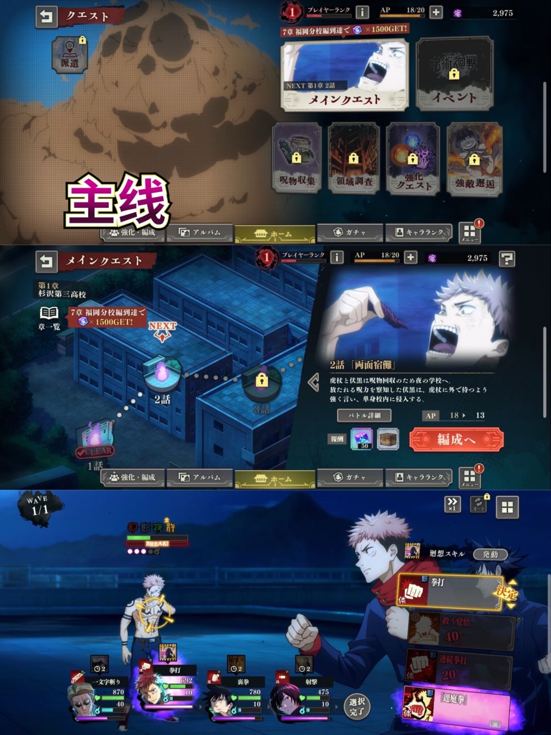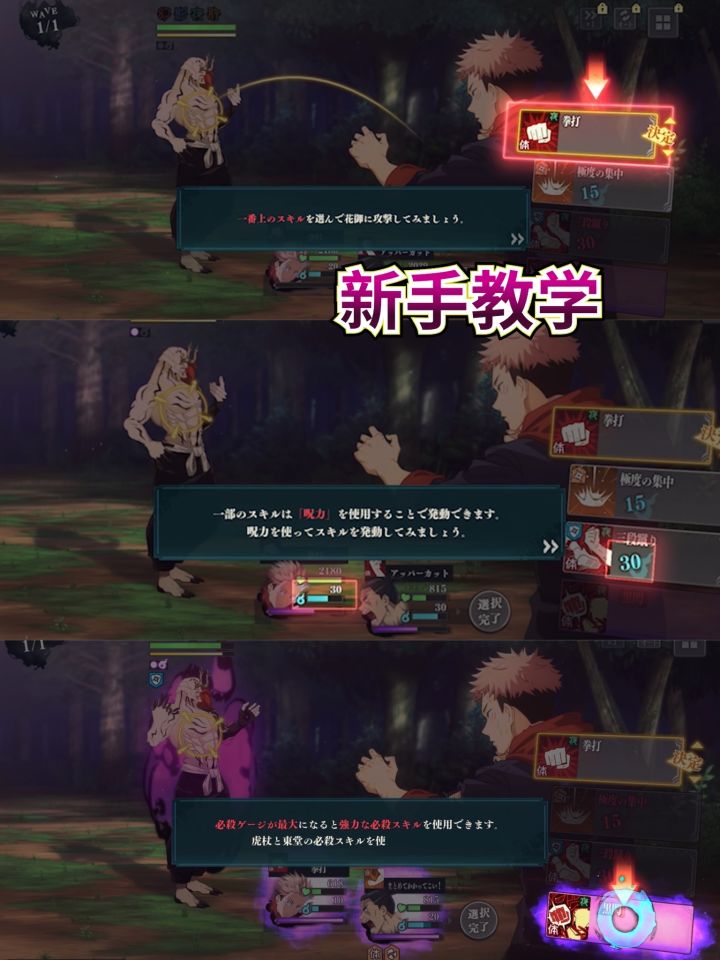 ⚔️ 采用回合制战斗,通过角色的必杀技,连携必杀和“回想残渣”与咒灵对战。
