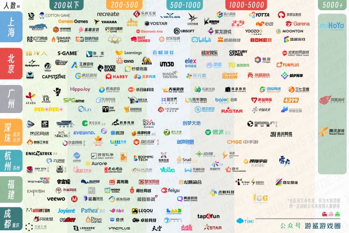200-500人( ✅ 有较高品质的盈利产品、有发行部门的研发公司;✅ 规模较大的纯发行公司。如极致、青瓷、游戏精酿、Efun、悠星等)