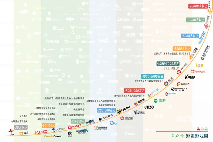 20-100人( ✅ 多数轻度休闲游戏公司;✅ 大中型公司前高管的创业团队;✅ 有投资的独立游戏团队)