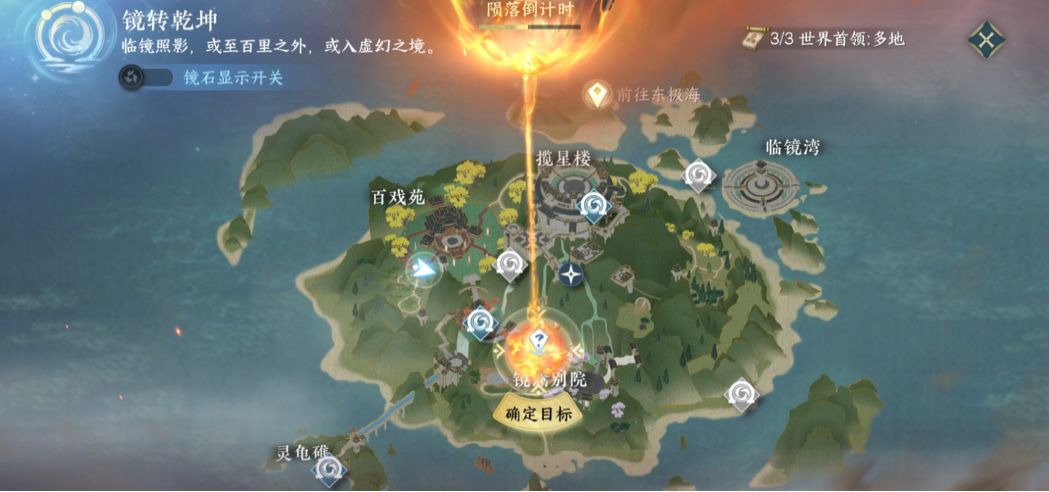 首先我接着去本里充能盖世诀,开始击任务风车谜题追踪坐标,盖世诀到坐标(1175.697)处,解锁风车谜题,需要穿越一次镜石完成。就可以获取方式,