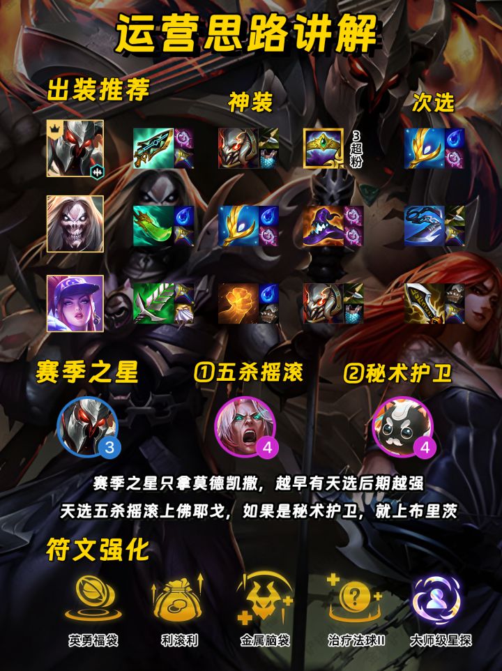 上八根据天选开5五杀摇滚或4秘术护卫即可🙆