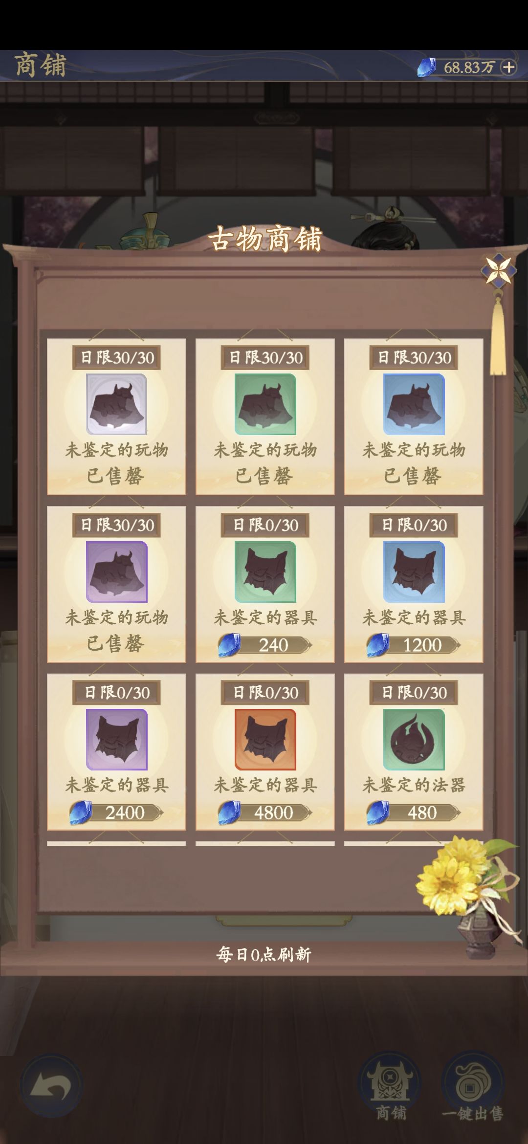 古物鉴定需要的古物是在云游,或者古物商店去购买古物!目前有玩物,器具,法器这三种!如果鉴定到好东西,会得到较好的收益。玩物是灵石,器具是门贡,法器是仙盟贡献!!!具体怎么玩,会单独出一章,下次,下次一定!!!