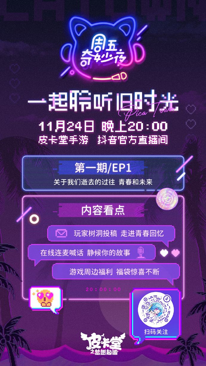 🎧今晚20:00《皮卡堂手游》抖音直播间,分享或聆听小镇故事,期待故事里精彩的那个你。