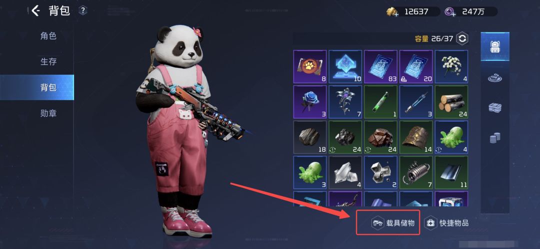 2.除了背包,幸存者还可以将物品先存储在载具储物中,也可以解燃眉之急。