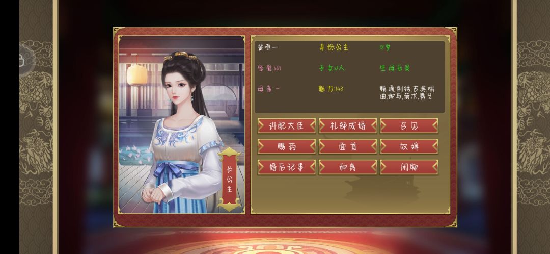 她已经被我许配了无数次,每次都显示不了驸马,也不生娃,可是驸马那里有她阿,其他公主是正常的。