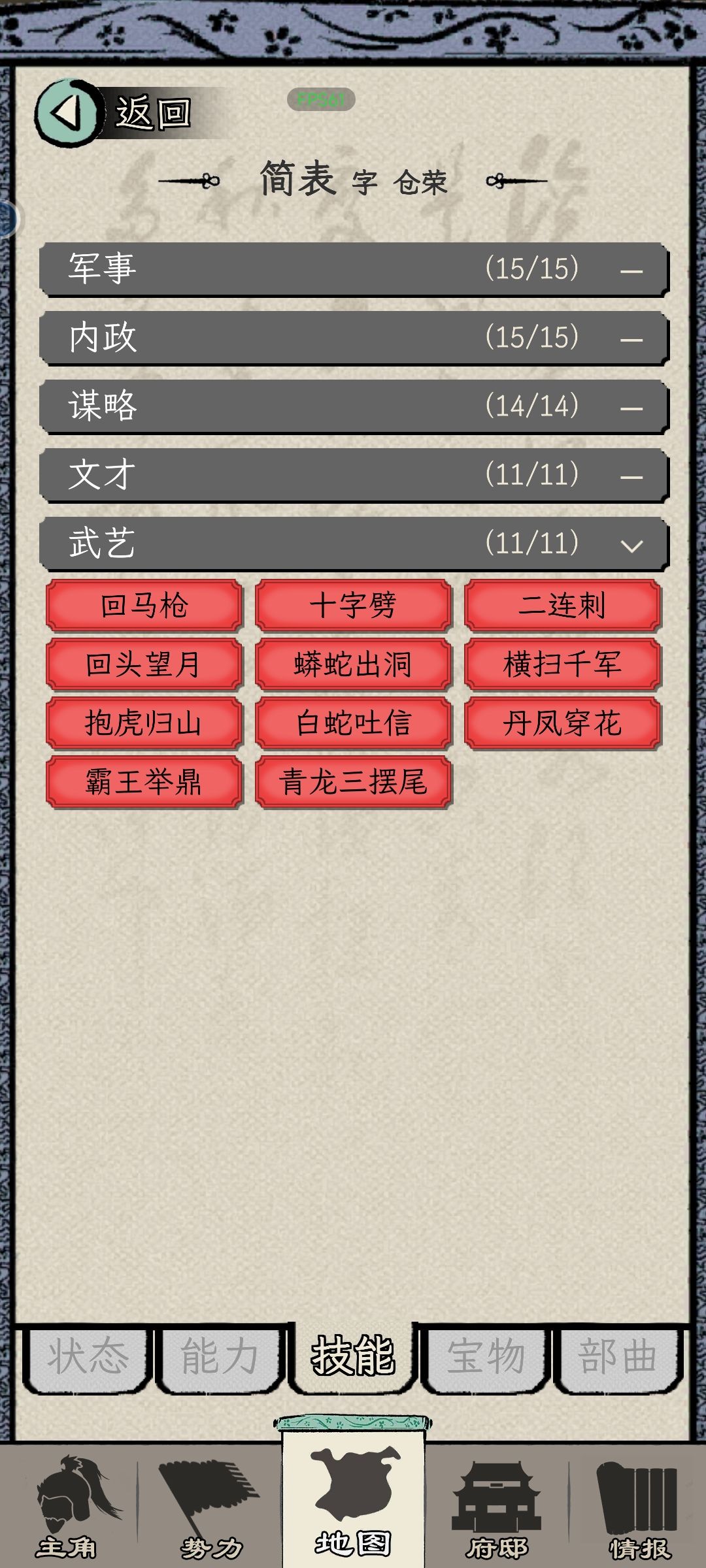 1、武艺能力,90左右请教个强力技能,就可以通过缉拿去刷所有技能了。