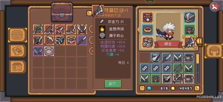 我发现一个问题,装备不能升级,我这把大剑我想一直用,还分解了个金装升,发现不能升级