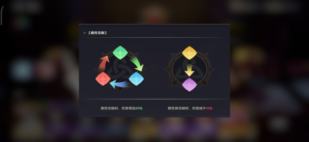 游戏里面存在三个阵营分别为业红、苍翠以及星蓝三种阵营,代表色分别为红色、绿色以及蓝色,三种阵营彼此存在克制与被克制关系,业红克制苍翠、苍翠克制星蓝、星蓝克制业红。每个角色只能属于一个阵营,克制对方则让输出伤害获得加成,被克制则让打出的输出伤害减少,这点在打迷惘之地赤红炼狱、沧岚废墟、永恒残桓时尤为明显。因为迷惘之地副本有破盾需求,这导致每个属性都要练一个,这样能够使用阵营克制加快对守护魔将的破盾,可作为破盾主力输出使用。