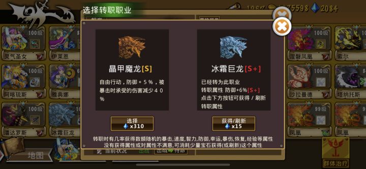 转职二:自由行动,速度+25,扇形(3*2)水属性攻击,减速敌人50%。先手、控制、灵活,使冰龙对后期先攻压制敌人发挥不可或缺的作用,尤其水系队伍的核心。本身的坦度也不低,可以吸收一些伤害。缺点:对于非水系队伍,占了两个输出位置用于辅助。推荐装备:六神。