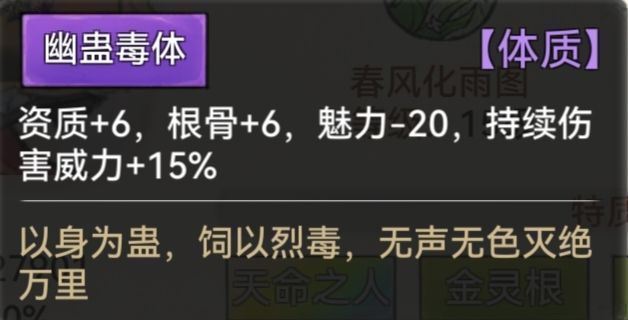 幽蛊毒体:持续伤害+15%