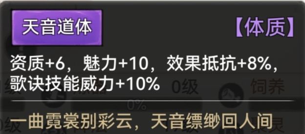 天音道体:效果抵抗+8% 歌诀威力+10%