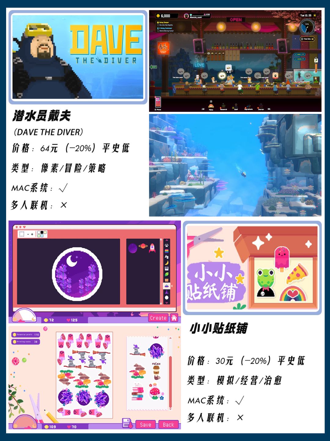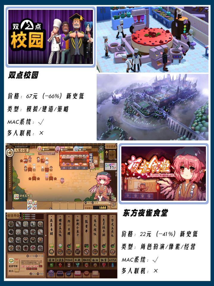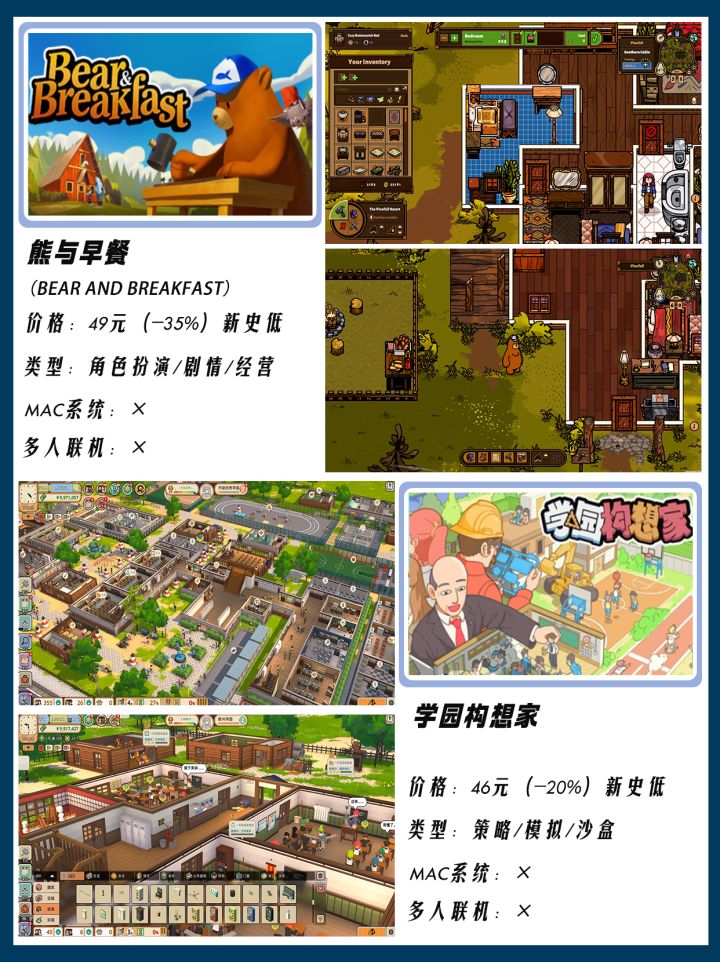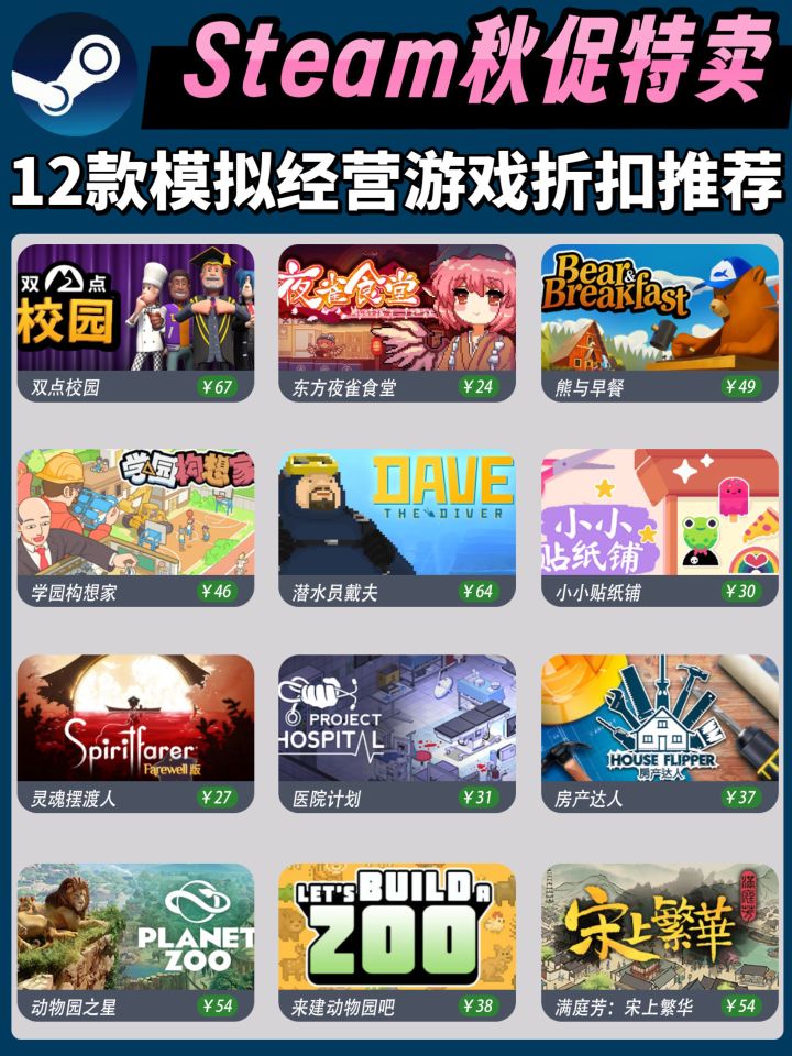 整理了12款秋促史低特惠的模拟经营游戏,有想蹲打折的游戏或者其他想看的特惠合集都可以留言告诉我!秋季特卖会给大家整理值得一买的游戏~