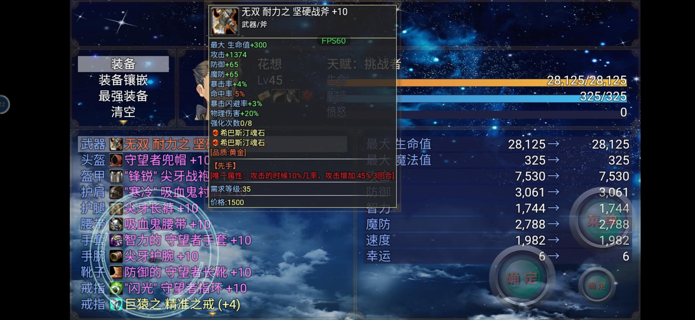 这身装备轻松推图七了。打80W血的使徒得赌它不连出暴击,主要是没刻意去堆防和血量。