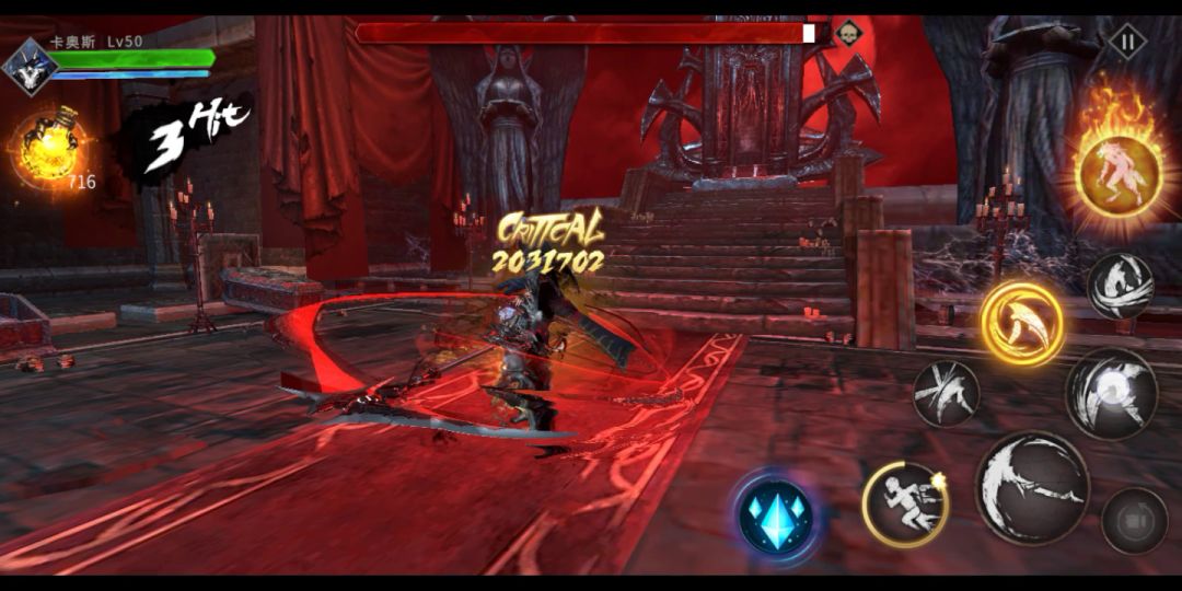 极闪后镰刀3技能伤害高于boss血量,一击必杀!录视频出了个加魔法的精魄,先留着。