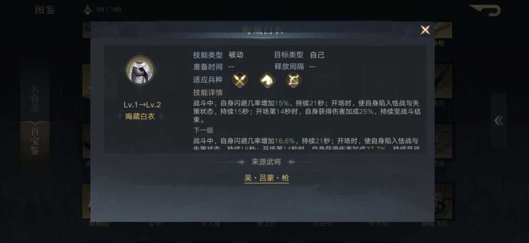宝物:晦藏白衣,闪避几率持续时间由全场调整至开场前21秒;伤害加成上调