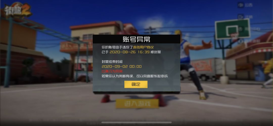 街篮2被无缘无故封号!给的理由是:挂机!