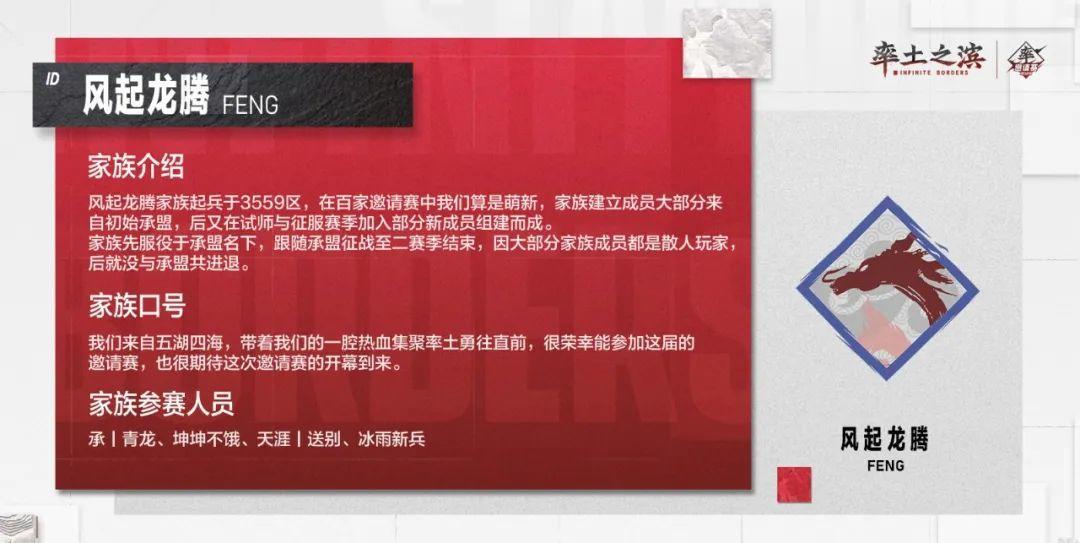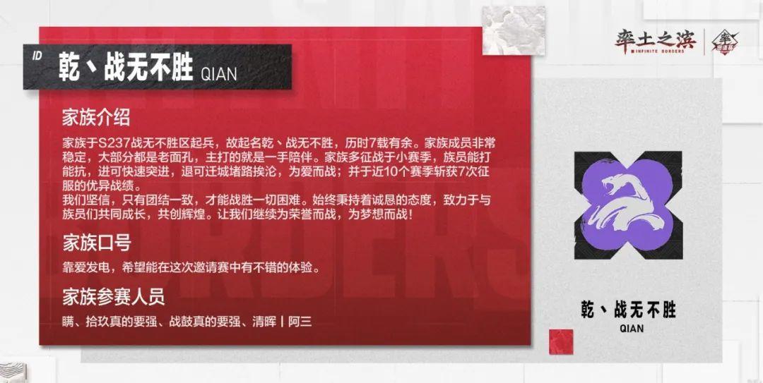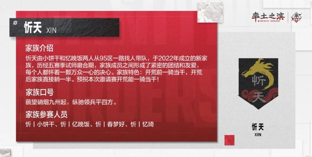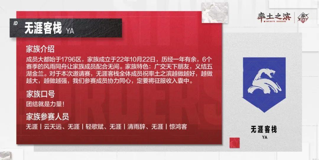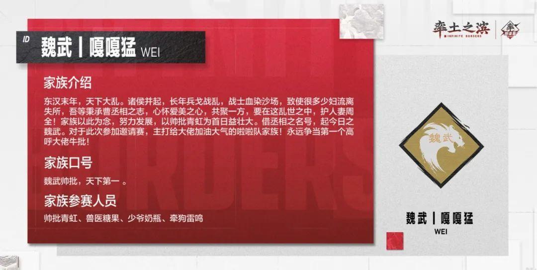 以上是部分参赛家族的风采展示,快来为自己的家族加油鼓气,同时也期待各位家族在邀请赛中的精彩表现!