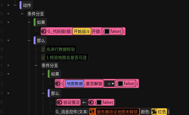 这时候,我们在任意服务器代码中,如果需要某段代码进行闭锁,就直接使用下面的方式,将代码块放入闭锁区域,同时选好自己的锁,勾上false。这时候,锁里面的代码就永远不会执行第二次了,直到我们开锁。