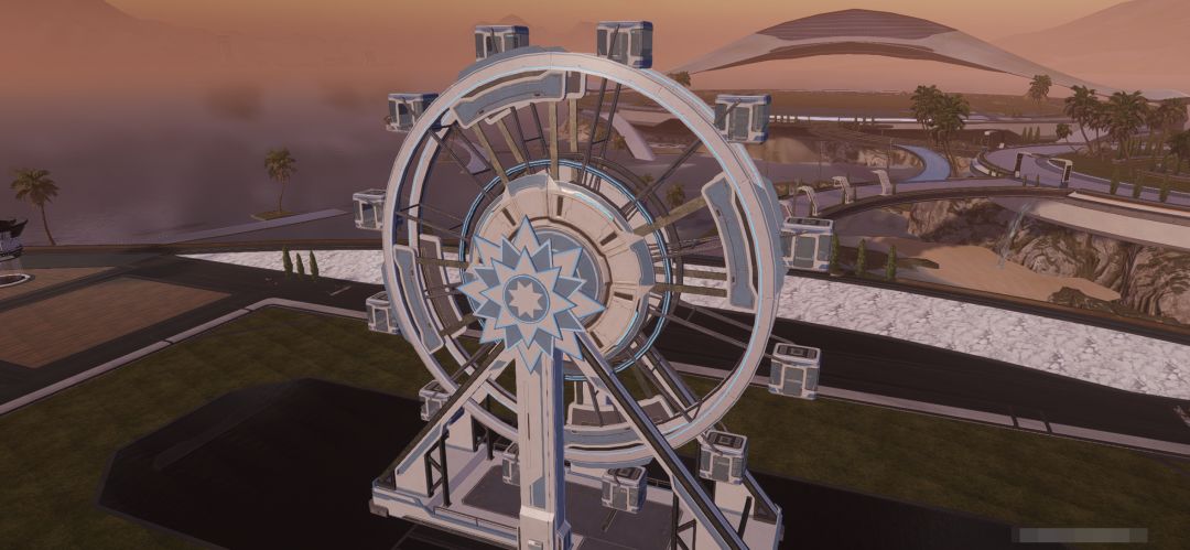 若是直接把人工岛专属装饰摩天轮搬出来,便能打造一个梦幻乐园,和室友坐上摩天轮缓缓上升,看日出看日落看星星闪烁,足不出户也可以浪漫约会~