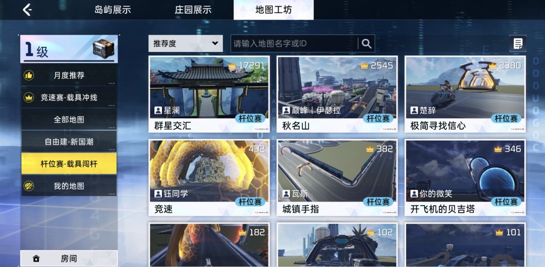 在共创工坊内,还有一个地图工坊,这里是干什么的嘞?从它的名字我们就能看出,它是让幸存者自己打造地图的(ฅ´ω`ฅ)在这里幸存者不仅可以发挥创造力搭建有趣的地图,还有专门的竞速赛模块,里面有幸存者们搭建的赛道,大家可以开房组队,飙车竞速,下一个秋名山车神就是你!
