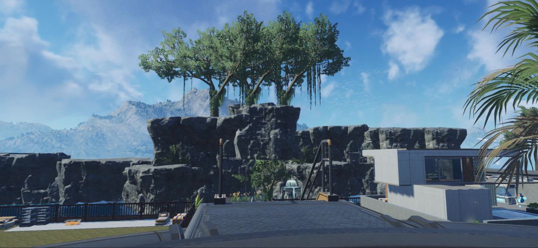 还有这位,深谙岛屿装饰之道,用鲜花和树木将自己的岛屿打造成了一个美丽的“度假区”,用岩石打造了一个秘密通道,还用假山垒起了一座连绵山峰,遥望山顶的几棵大树也是令人心旷神怡~