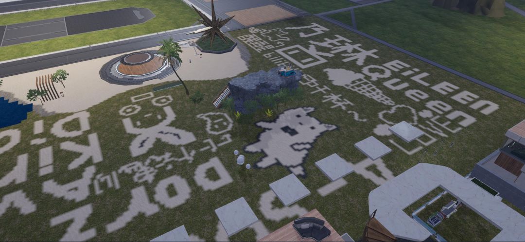 这位幸存者使用地表编辑功能直接在岛屿上作起了画,用可爱的画风向每个来参观的幸存者打招呼~地上的文字中还有一个小彩蛋,大家不妨把图片倒过来找找!嘿嘿阿姨猜她一定很喜欢A-SOUL~