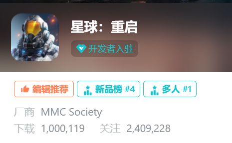 咳咳~宣布一件大事!《星球:重启》在TapTap上的下载量已经突破100w啦!撒花。:.゚ヽ(。◕‿◕。)ノ゚.:。+゚