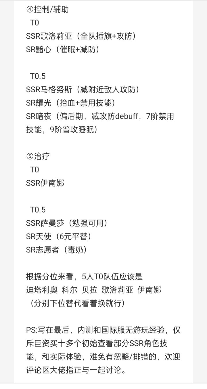PS:写在最后,内测和国际服无游玩经验,仅斥巨资买十多个初始 查看部分SSR角色技能,和少量实际体验,难免有忽略/排错的,欢迎评论区大佬指正与一起讨论![[嗒啦啦4_比心]](https://img-tc.tapimg.com/market/images/d28961d9ef2d62e62333b8d17a8612dc.gif)