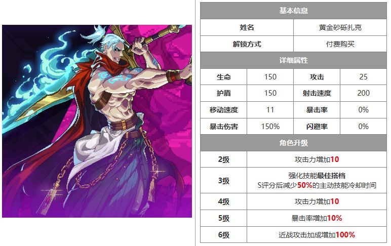 在升满级后不带纪念品拥有45的高额攻击力,而较低血量带来的生存能力则并非他的强项,其他整体都中规中矩,再来看技能介绍