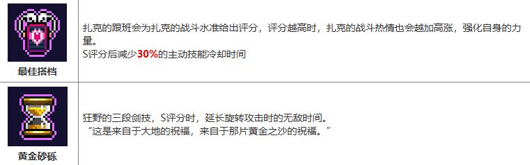 被动技能最佳搭档:本质上是一个评分器,随着施放主动剑技能够提升评分并且提高自身伤害,角色满级后S评分减少技能的50%冷却时间