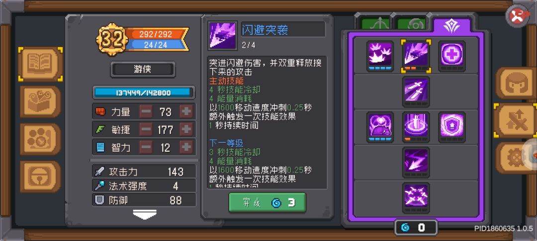 前面2敏1力,后面根据装备给,技能需要能量大概40左右就够用,可以洗点技能主加被动,升满级再说