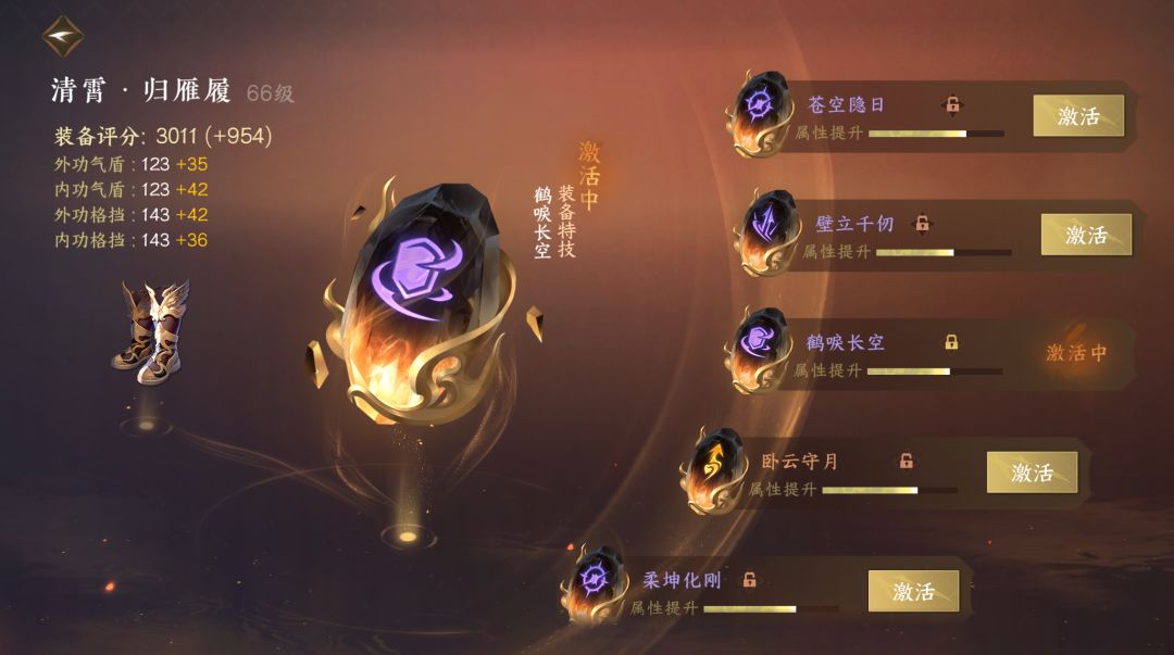 鞋子:有金震海就带,没有就紫色的也行,都没有就带鹤唳长空。