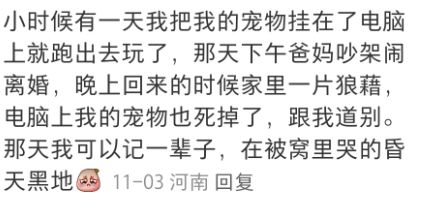 也有的孩子从电子宠物的存亡危机中,收获了来自最无私的亲情援助——毕竟面对孩子的哭泣与伤心,即使爸爸妈妈再难以理解也总是愿意伸出援手——