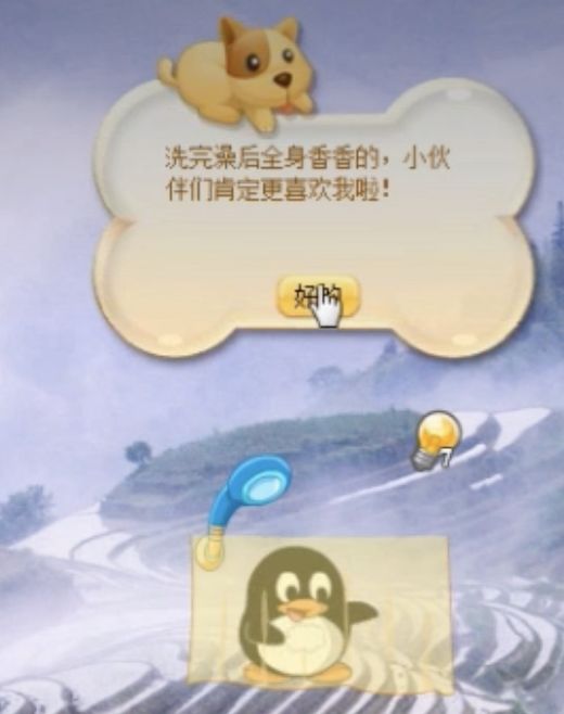 虽然娱乐性不如真实宠物,但是在饲养的麻烦程度上,这只企鹅可算是一点都少不了——只要在线,它的饥饿值和清洁值就会不断降低,你需要定时观察它的数值,给它喂饭,洗澡,陪他玩保证身心健康。