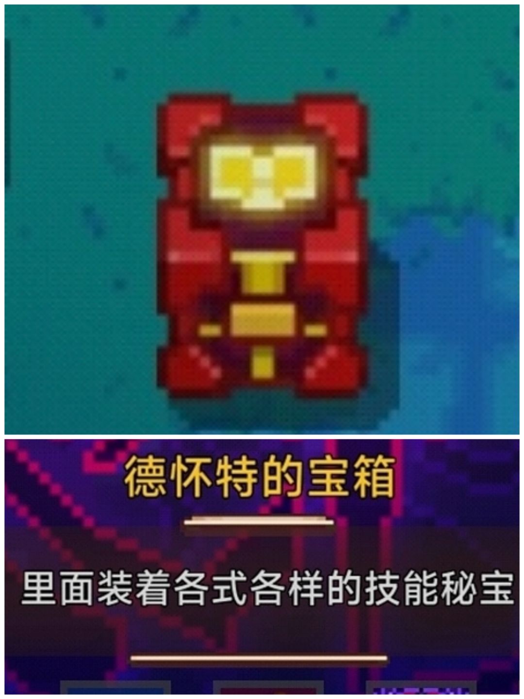 每个角色都有专属宝物,而同角色不同天赋的对应宝物也不一样。所有角色专属宝物都必须从德怀特的宝箱中获取,如图: