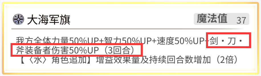4.因为艾尔席儿大海军旗技能只会为刀/剑/斧角色提升武器装备者伤害,而AC杜拿利斯是杖,所以吃不到这个加成,需要其他人给。