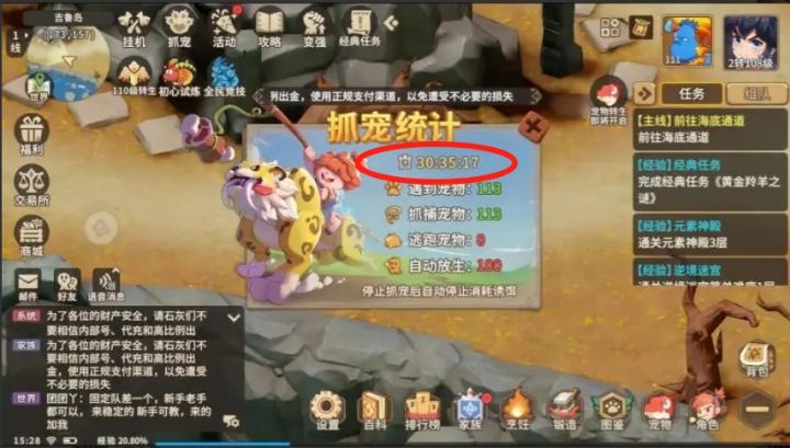 我是连续挂机,换算一下,如果你是每天挂机抓宠几个小时的,你觉得,你抓到概率会比我更大吗?
