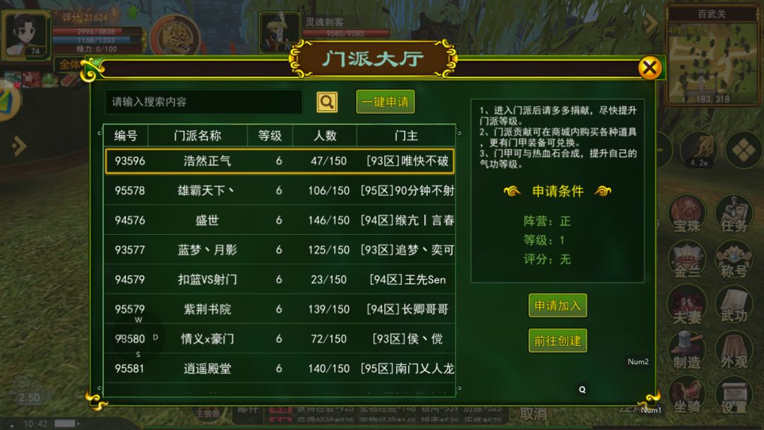 2、加入门派门派在游戏中扮演着重要角色,可以为玩家带来许多好处。首先,加入门派可以让玩家获得丰富的经验和装备。玩家每天可以进行门派捐赠,通过获得门派贡献来兑换各种珍贵的装备和道具,提升个人实力。这些装备和道具在游戏中相对稀有,在应对各种挑战时帮助玩家更加从容。门派还提供重要的门派任务。玩家可以每天完成这些任务,获得大量经验奖励,快速提升自己的等级。这些门派任务要求玩家完成特定的目标,例如击败特定的敌人或者收集特定的物品等。完成任务不仅会获得经验奖励,还能够增进与门派的关系,进一步获取门派贡献和其他奖励。