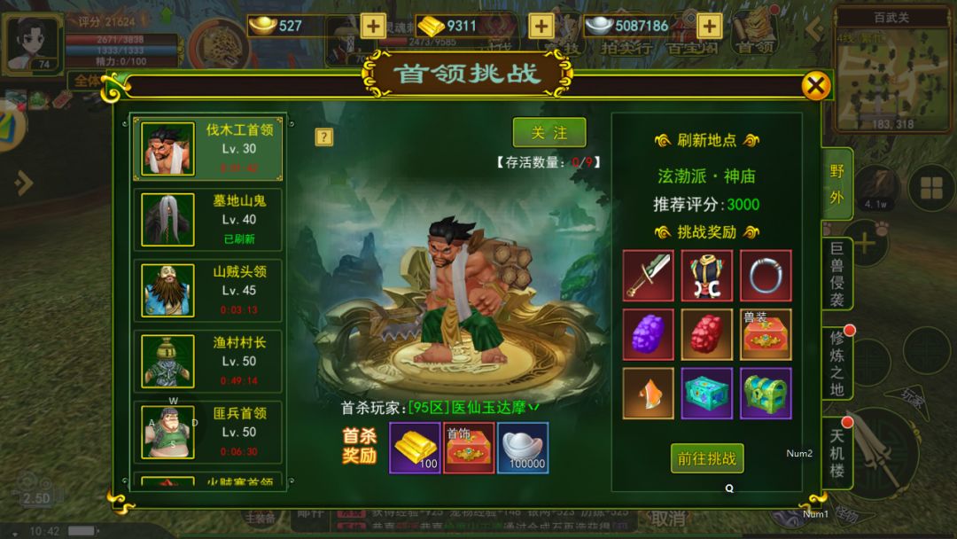 3、首领在游戏中,击杀首领是一项至关重要的任务,其可以带来丰厚的奖励。首先,击杀首领将获得大量的经验值。在游戏中,经验值的积累是提升角色等级的关键因素,而丰富的经验值则能够大幅度提升角色的实力和能力。通过击杀首领所获得的经验值,玩家可快速提升等级,解锁更多的技能和属性,进一步加强自身在游戏中的竞争力。