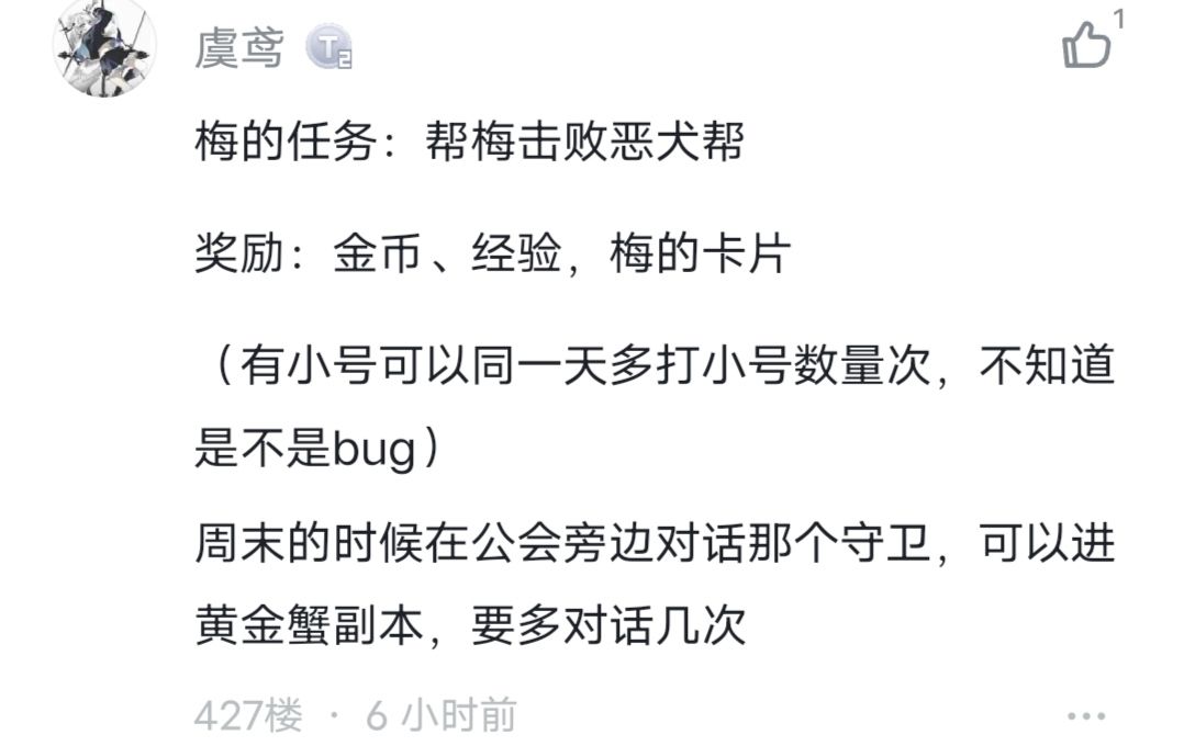 13、周六了,和工会门口前的骑士对话第一次多对话几次,就会触发任务讨伐黄金蟹.